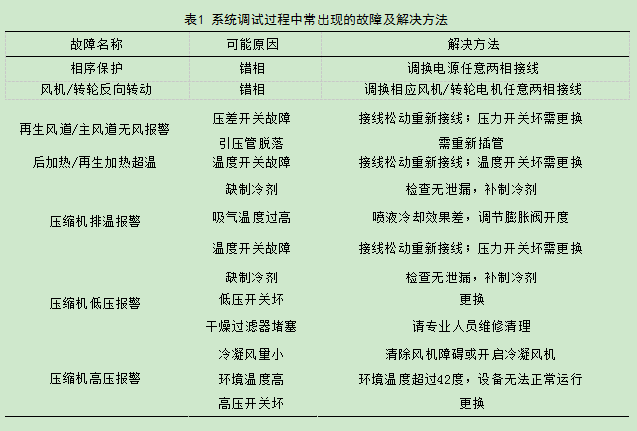 為了確保調試過程中人身設備安全,在除濕機調試前(斷電情況下)應先確保各電器元件安裝型號正確。然后,檢查電氣接線,確保接線端子全部緊固,確定線路接線正確,其絕緣性能,系統接地均符合要求。