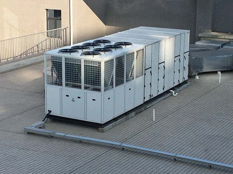 因其多安裝于屋頂而得名,其實也經常安裝在空調房間周圍室外場地。它與水冷柜相比較,由于不需安裝冷卻水系統,故比水冷機安裝方便,在水源緊缺地區,尤為合適。它與風冷機相比較,由于是整體結構,故縮短了系統管路長度,從而提高了制冷效率,提高了系統可靠性,由于是整機安裝于屋外,故不占用寶貴的室內空間,并且在室內無機組運行時的噪聲。故在國外,它獲得了廣泛的歡迎。
