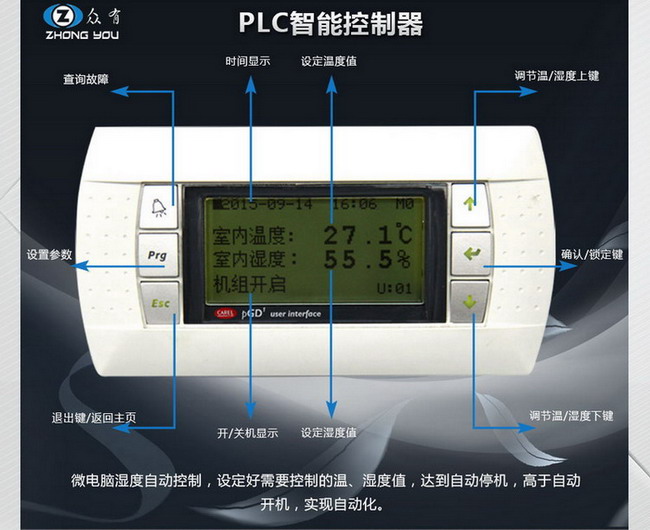 ZHONGYOU眾有恒溫恒濕機采用PLC控制器